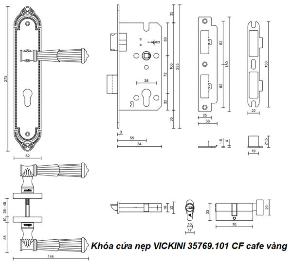- Khóa cửa nẹp VICKINI 35769.101 CF cafe vàng, ruột chốt
