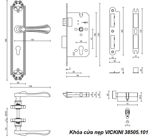 - Khóa cửa nẹp VICKINI 38505.101 K24 mạ vàng K24