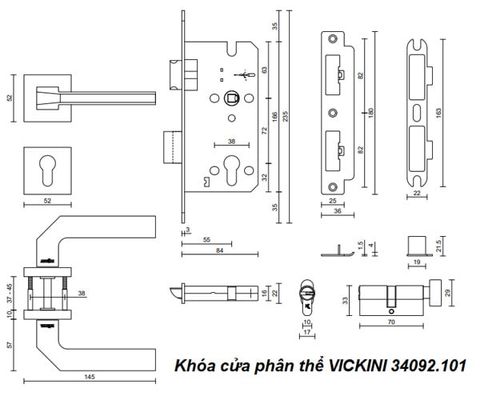 💡 Khóa Cửa Phân Thể VICKINI 34092.101 rất phù hợp cho các cửa kim loại, gỗ, và nhựa có độ dày từ 37mm đến 45mm và độ rộng đố cửa trên 90mm. Đây là lựa chọn lý tưởng cho cửa phòng ngủ, phòng khách, cửa chính, cửa thông phòng, hoặc cửa phòng tắm, giúp bảo vệ ngôi nhà của bạn một cách hiệu quả và tạo sự sang trọng.