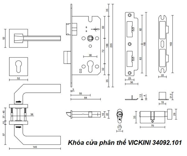 - Khóa cửa phân thể VICKINI 34092.101 MSN ken xước mờ, ruột chốt