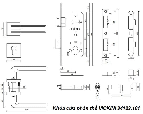 💡 Khóa Cửa Phân Thể VICKINI 34123.101 lý tưởng cho các cửa kim loại, gỗ, và nhựa có độ dày từ 37mm đến 45mm và độ rộng đố cửa trên 90mm. Đây là lựa chọn tuyệt vời cho cửa phòng ngủ, phòng khách, cửa chính, cửa thông phòng, hoặc cửa phòng tắm, giúp tăng cường bảo mật và mang lại vẻ đẹp sang trọng.