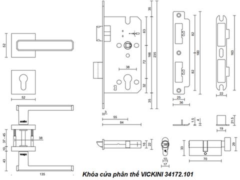 - Khóa cửa phân thể VICKINI 34172.101 MSN ken xước mờ, ruột chốt