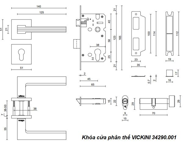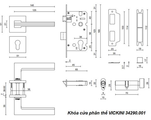 - Khóa cửa phân thể VICKINI 34290.001 MBG vàng xước mờ, ruột chốt