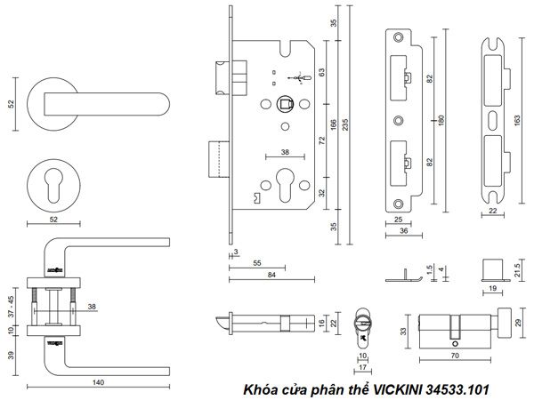💡 Khóa Cửa Phân Thể VICKINI 34533.101 lý tưởng cho các cửa kim loại, gỗ, và nhựa có độ dày từ 37mm đến 45mm và độ rộng đố cửa trên 90mm. Đây là lựa chọn tuyệt vời cho cửa phòng ngủ, phòng khách, cửa chính, cửa thông phòng, hoặc cửa phòng tắm, giúp tăng cường bảo mật và làm đẹp không gian sống của bạn.