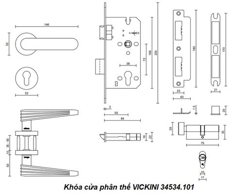 - Khóa cửa phân thể VICKINI 34534.101 MBG vàng xước mờ