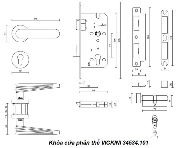 💡 Khóa Cửa Phân Thể VICKINI 34534.101 là lựa chọn lý tưởng cho các cửa kim loại, gỗ, và nhựa có độ dày từ 35mm đến 50mm và độ rộng đố cửa trên 90mm. Đây là sản phẩm hoàn hảo cho cửa phòng ngủ, phòng khách, cửa chính, cửa thông phòng, hoặc cửa phòng tắm, mang lại sự bảo vệ an toàn và vẻ đẹp cho ngôi nhà của bạn.