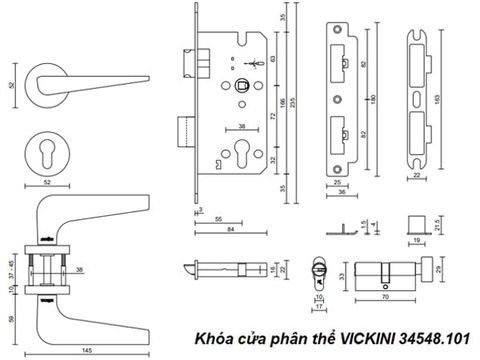 - Khóa cửa phân thể VICKINI 34548.101 MSN ken xước mờ, ruột chốt