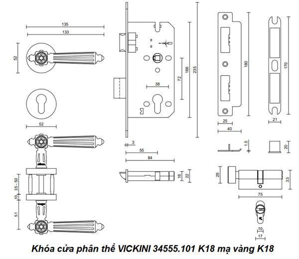 - Khóa cửa phân thể VICKINI 34555.101 K18 mạ vàng K18