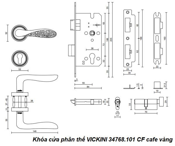 - Khóa cửa phân thể VICKINI 34768.101 CF cafe vàng, ruột chốt