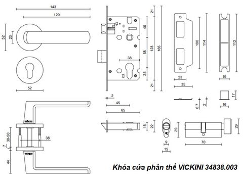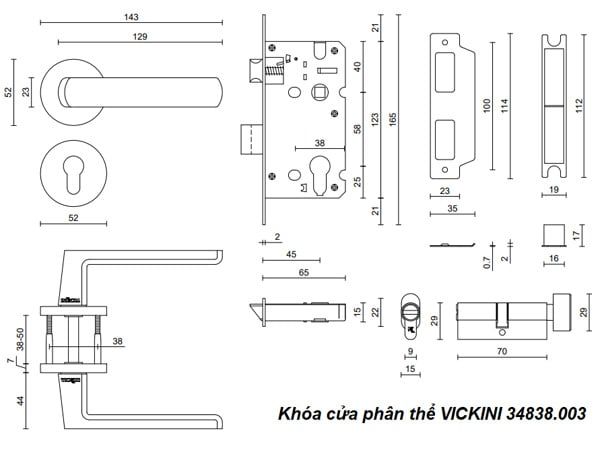 💡 Khóa Cửa Phân Thể VICKINI 34838.003 với ruột chốt toilet là lựa chọn lý tưởng cho cửa nhà vệ sinh, phòng tắm hoặc các không gian cần sự riêng tư. Sản phẩm này phù hợp với cửa kim loại, gỗ, và nhựa có độ dày từ 38mm đến 50mm và độ rộng đố cửa trên 80mm.