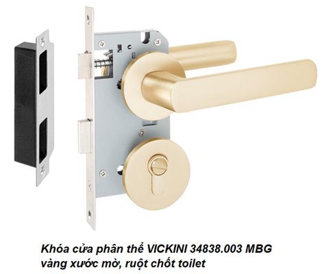 - Khóa cửa phân thể VICKINI 34838.003 MBG vàng xước mờ, ruột chốt toilet