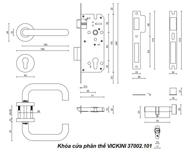 - Khóa cửa phân thể VICKINI 37002.101 SSS inox 201 mờ, ruột chốt