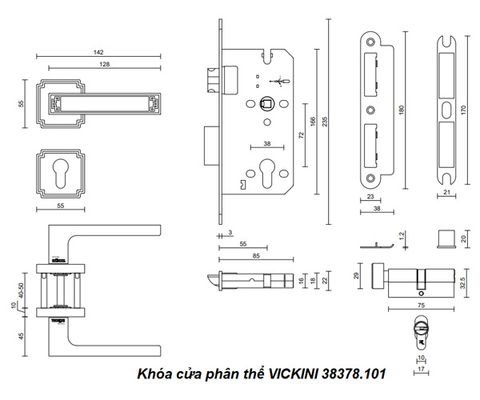 - Khóa cửa phân thể VICKINI 38378.101 K24 mạ vàng K24