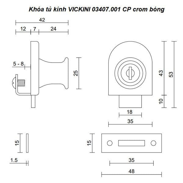 🔑 Thông Tin Nổi Bật Của Khóa Tủ Kính VICKINI 03407.001 CP Crom Bóng: