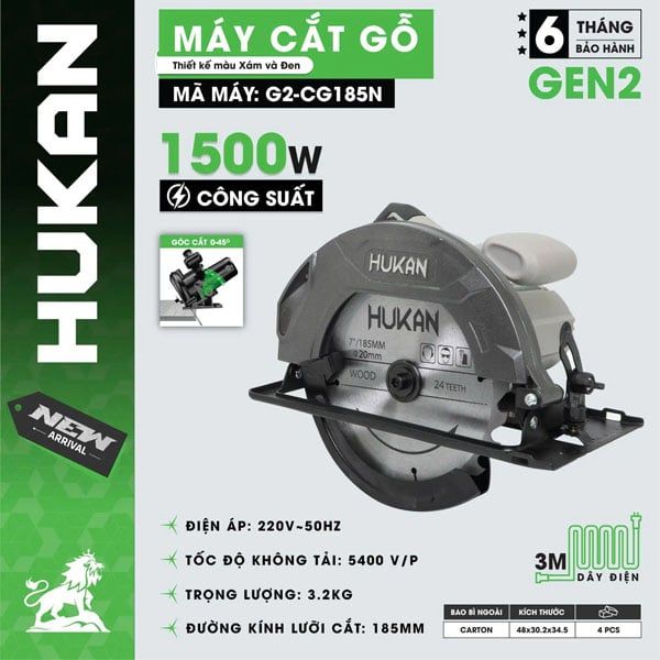 🪚 MÁY CƯA ĐĨA HUKAN HK-G2-CG185N – CÔNG SUẤT 1500W, CẮT GỖ CHUẨN – NHANH – ÊM – CHO THỢ CHUYÊN NGHIỆP!