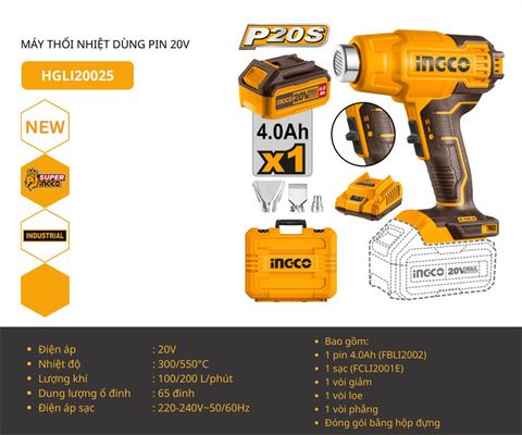 - Máy khò hơi nóng dùng pin 20V INGCO HGLI20025