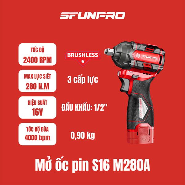 Máy vặn bu lông dùng pin 16V SFUNPRO S16 M280A 🔩