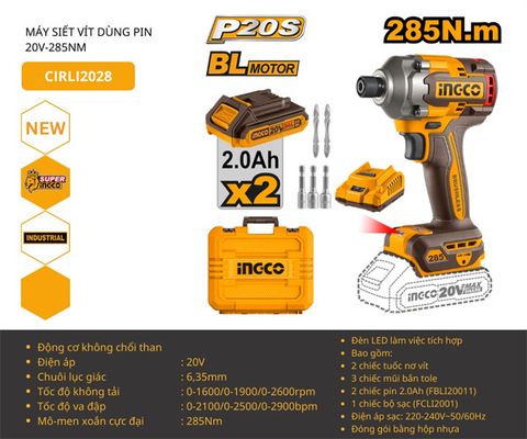 - Máy vặn vít dùng pin 20V-285Nm INGCO CIRLI2028