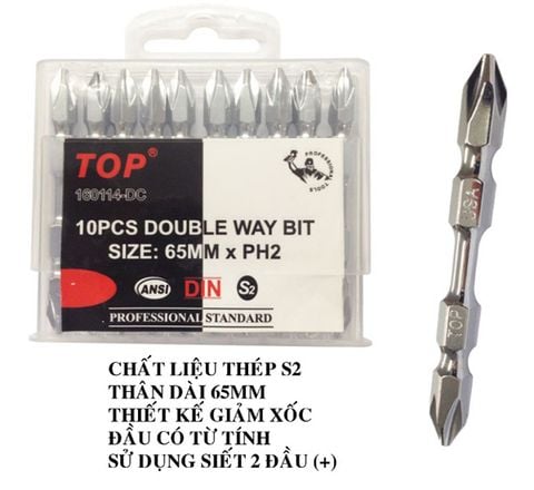 - Mũi siết vít bake 2 đầu cao cấp xi bóng hiệu TOP có thiết kế nhỏ gọn, đường kính thân vít 6mm và đường kính mũi vít PH2, với chiều dài 65mm, chuyên dụng cho các máy máy mở vít, máy khoan pin, khoan điện…