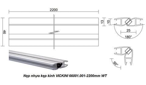 - Nẹp nhựa kẹp kính VICKINI 66001.001-2200mm WT, có nam châm góc 90 độ và 180 độ