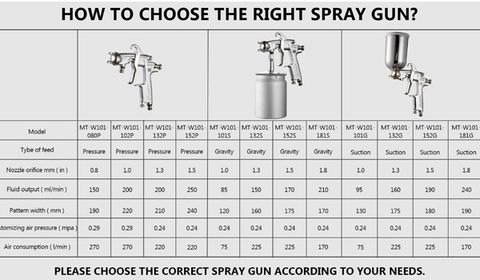 - Lưu lượng sơn: 95, 160, 190 và 240 ml/p
