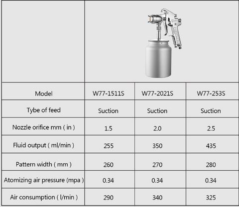 - Lưu lượng sơn: 255, 350, 435 ml/p