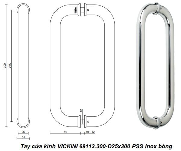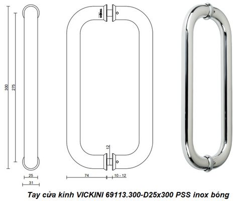 🔧 Thông Số Kỹ Thuật Tay Cửa Kính VICKINI 69113.300-D25x300