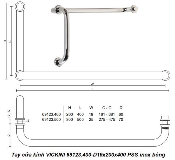 🔧 Thông Số Kỹ Thuật Tay Cửa Kính VICKINI 69123.500-D25x300x500