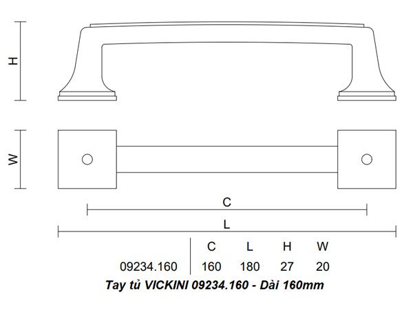 🔧 Thông Số Kỹ Thuật Tay Tủ VICKINI 09234.160: