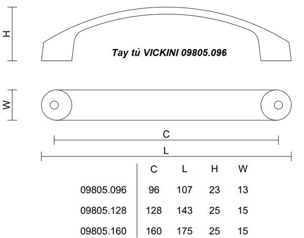 🔧 Thông Số Kỹ Thuật Tay Tủ VICKINI 09805.128: