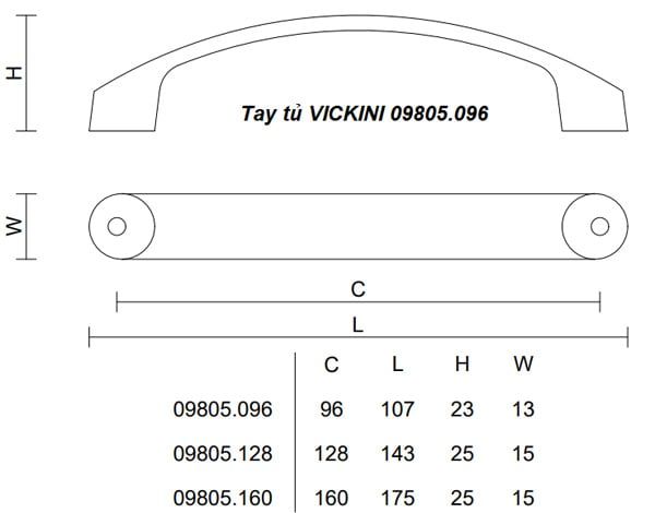 🔧 Thông Số Kỹ Thuật Tay Tủ VICKINI 09805.160: