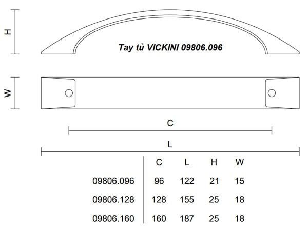 🔧 Thông Số Kỹ Thuật Tay Tủ VICKINI 09806.128: