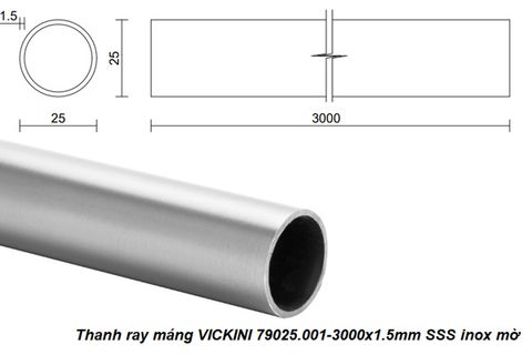 - Thanh ray máng VICKINI 79025.001-3000x1.5mm SSS inox mờ