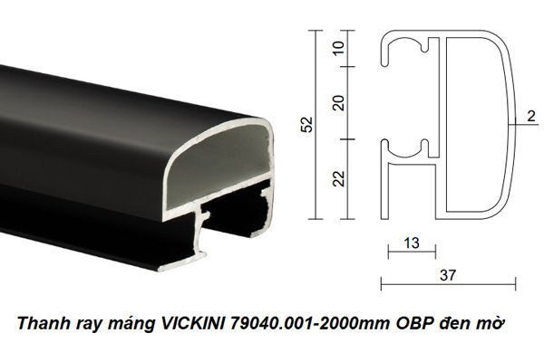 - Thanh ray máng VICKINI 79040.001-2000mm OBP đen mờ