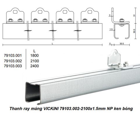 - Thanh ray máng VICKINI 79103.002-2100x1.5mm NP ken bóng