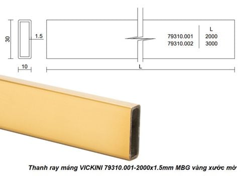 - Thanh ray máng VICKINI 79310.001-2000x1.5mm MBG vàng xước mờ