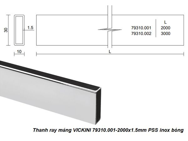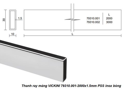 - Thanh ray máng VICKINI 79310.001-2000x1.5mm PSS inox bóng