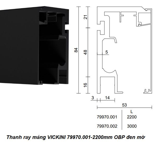 - Thanh ray máng VICKINI 79970.001-2200mm OBP đen mờ