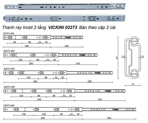 🌟 Các Dòng Sản Phẩm Thanh Ray VICKINI 02273:
