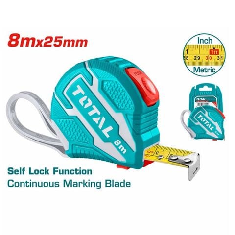 Thước cuộn thép nền vàng 8mx25mm Total TMT126281 – Chính xác, tiện lợi, an toàn