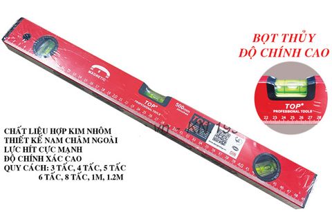 - Thước thủy đỏ 500mm hiệu TOP là sản phẩm được sản xuất theo dây chuyền công nghệ khép kín, luôn đảm bảo chất lượng & độ chính xác trong quá trình sử dụng.