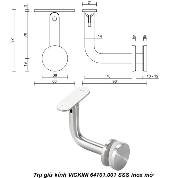 📞 Liên Hệ Mua Ngay Trụ Giữ Kính VICKINI 64701.001 SSS Inox Mờ